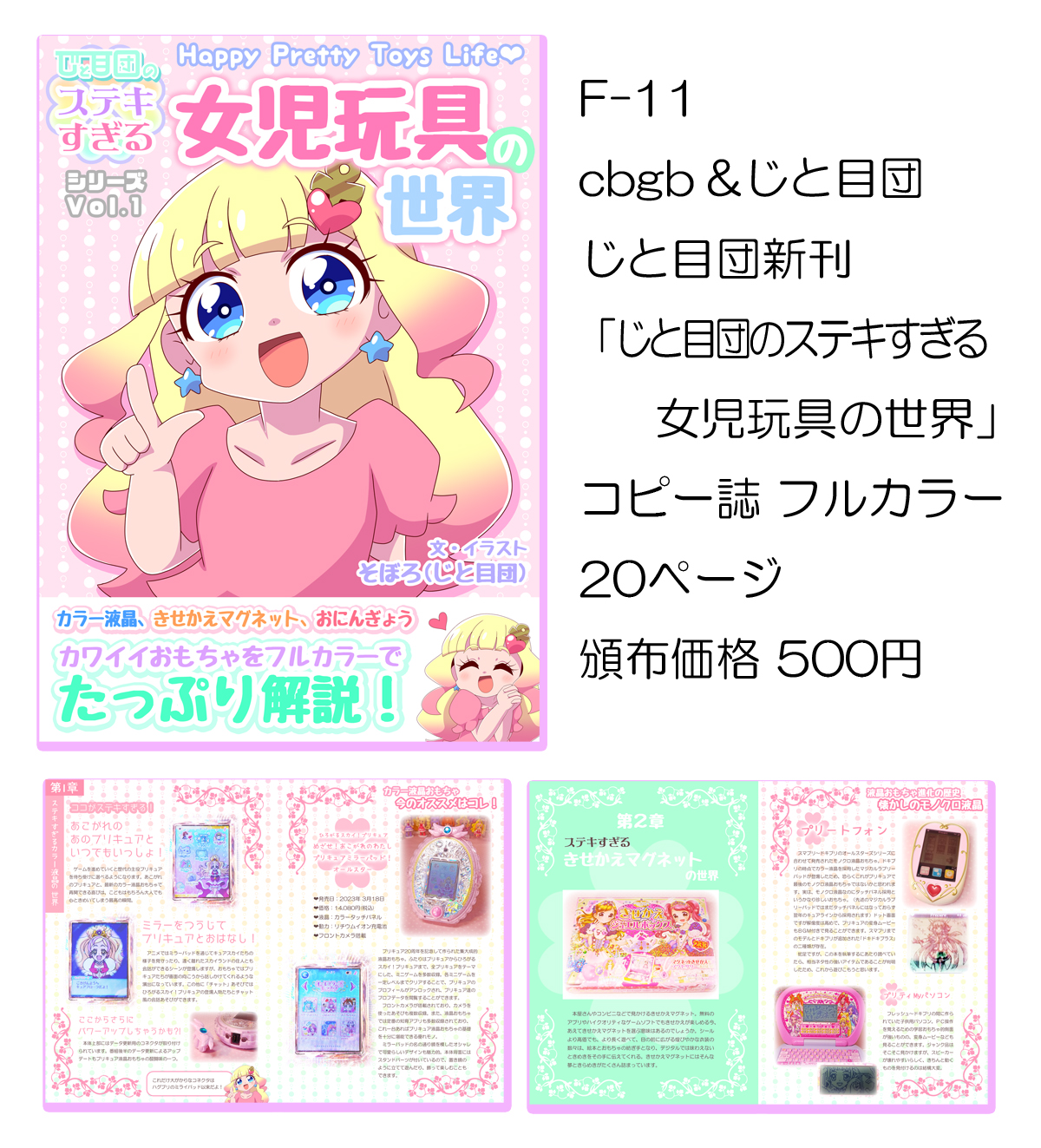 じと目団は液晶女児玩具展示と自作グッズの頒布ですの