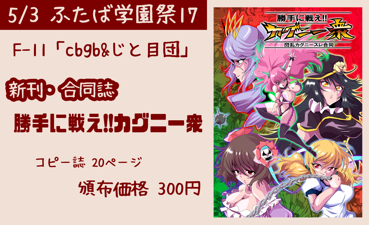 「cbgb」と「じと目団」ふたつのサークルの2スペ合体参加ですの