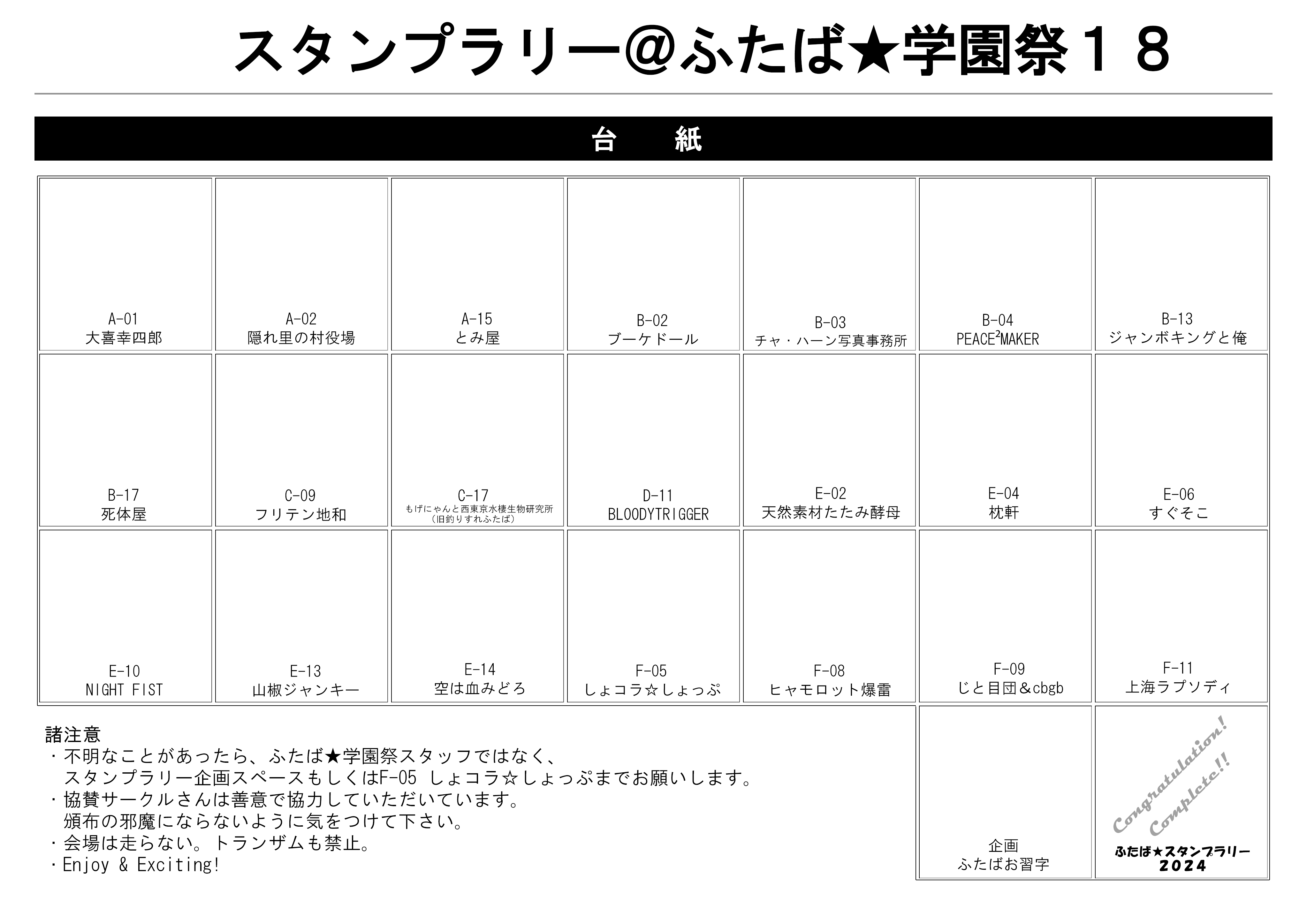遅くなりましたが、ふたば★学園祭18の配置図をダウンロードコーナーに置きました。