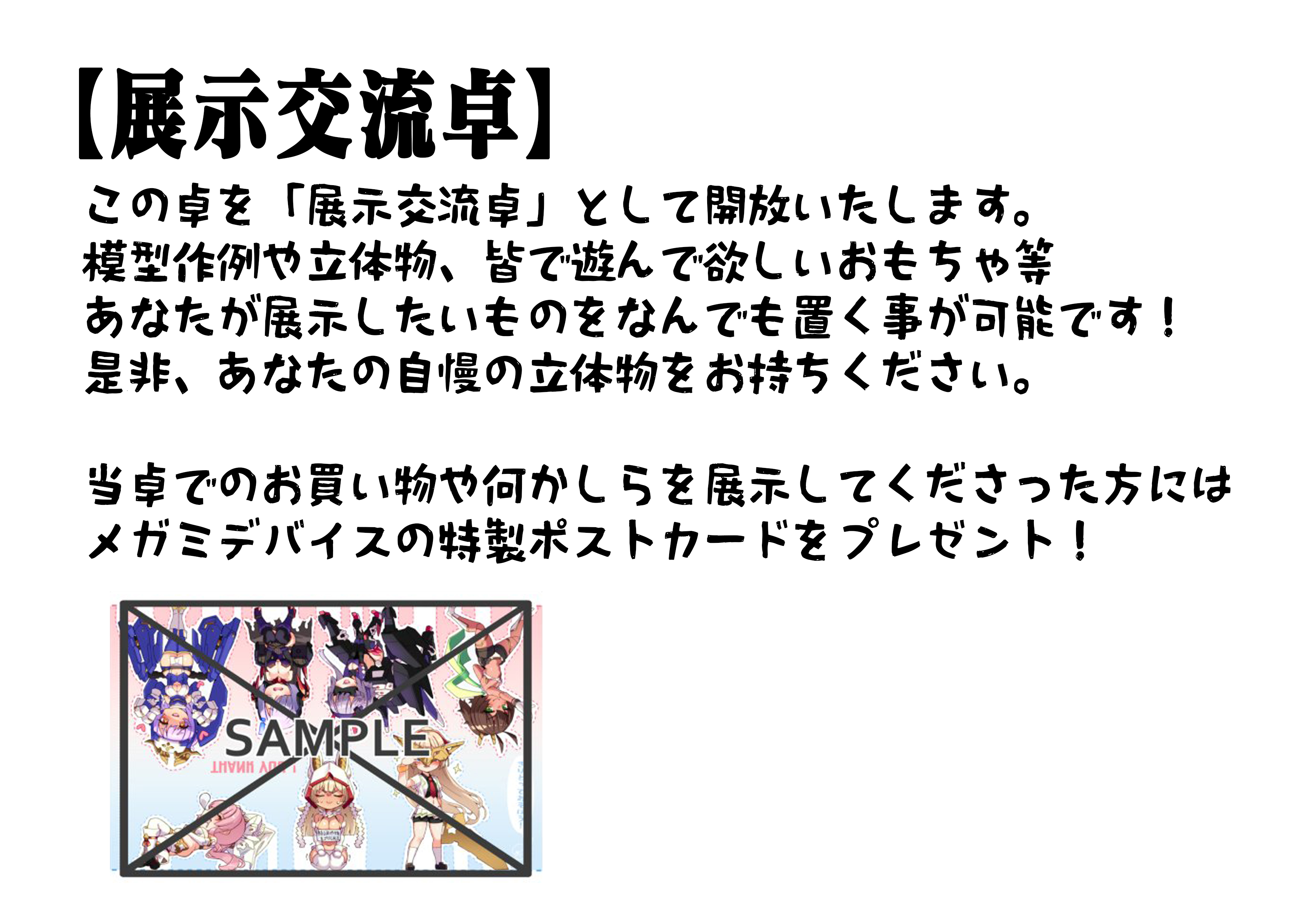 ホビーコンテストさんの隣で模型とか玩具とかの展示交流卓を開放いたします
