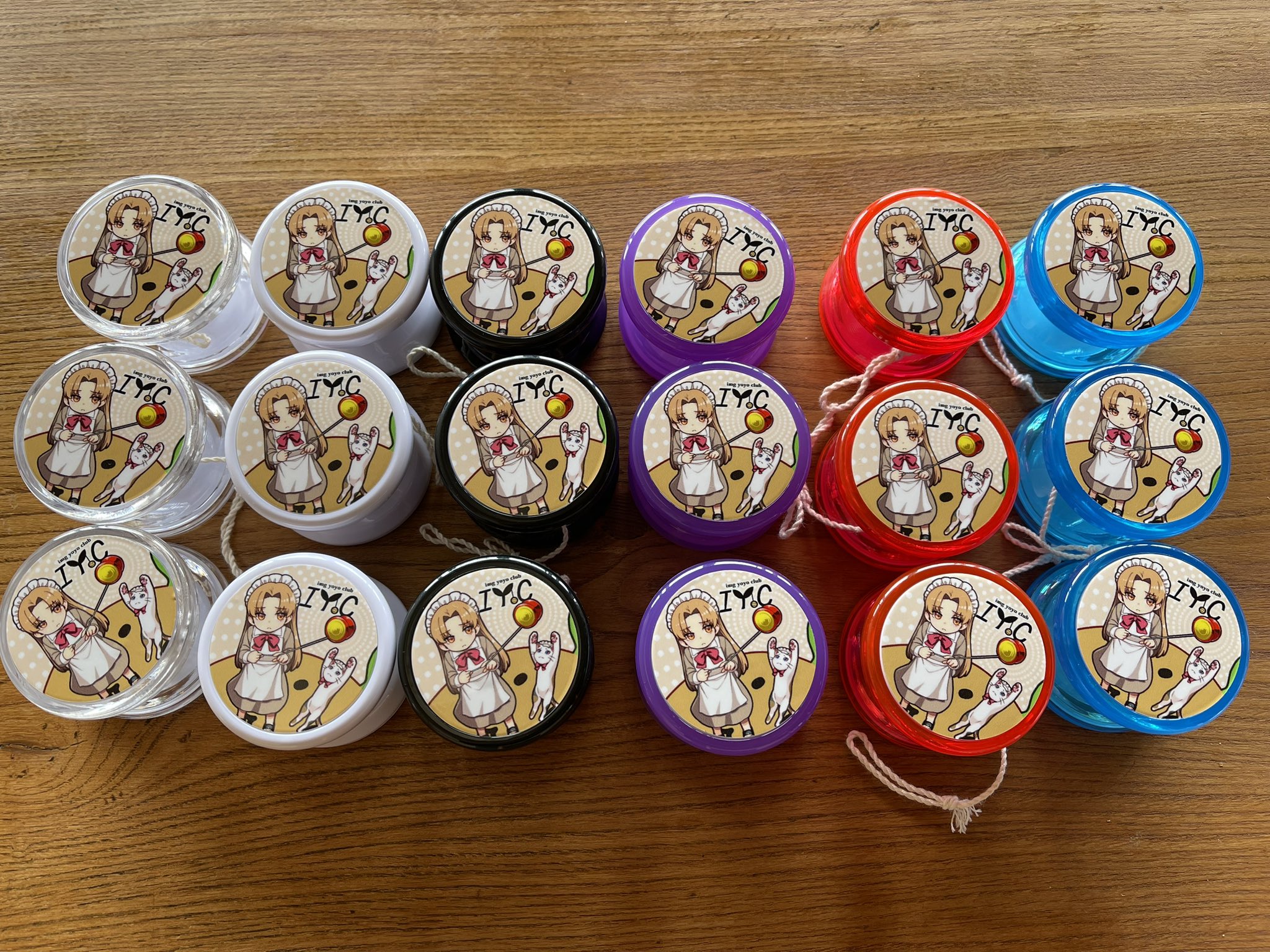 画像のようなこんな感じのヨーヨーと同じ絵柄のステッカーそれと3Dプリンター製のヨーヨーを販売予定
