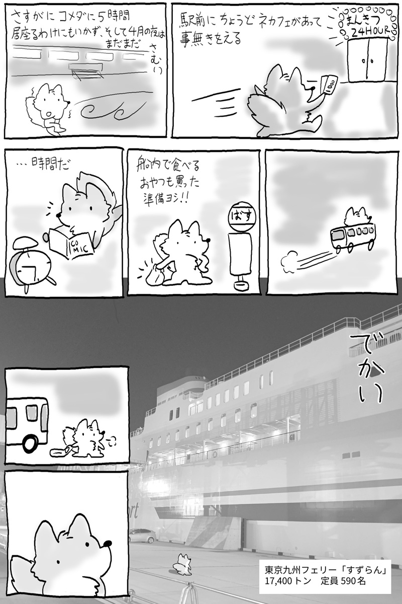 今回乗るオーシャン東九フェリーのレポまんがを描くよ