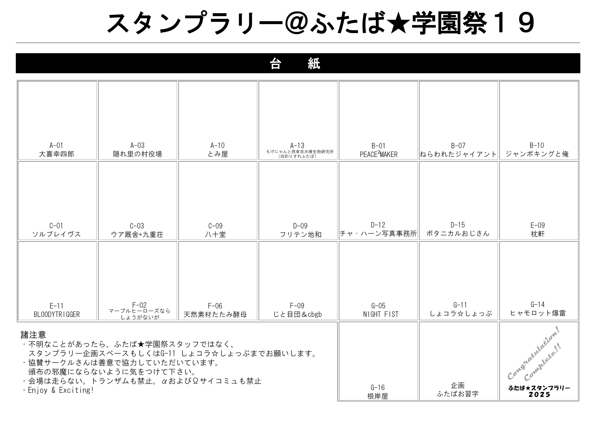 コンプリートした後に企画スペースに来て下さればささやかながら賞品を用意しております